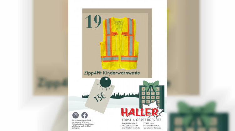 Die Zipp4Fit Warnweste erhöht die Sichtbarkeit im Straßenverkehr. leicht, gut sichtbar und robust. Heute für 15 Euro bei Haller Forst und Gartengeräte. Solange verfügbar.